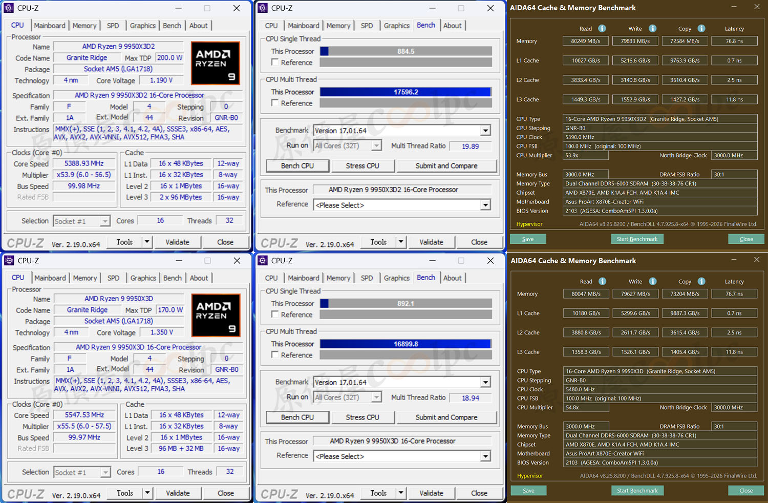 AMD Ryzen™ 9 9950X3D2 Dual Edition 跑分軟體測試: