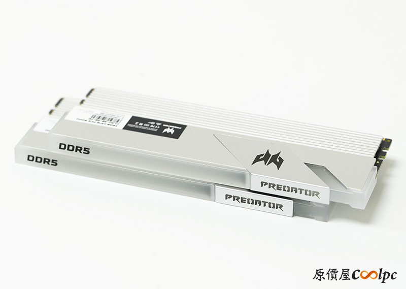 彩盒包裝還有記憶體美照,Predator Vesta II RGB 16GB2 DDR5-6000也是有黑、銀兩種配色,這回我們拿到的是銀色版本,造型曾獲2022紅點設計大獎,RGB部分也支援ASUS Aura Sync、MSI Mystic Light、GIGABYTE RGB Fusion、ASROCK Polychrome Sync燈光軟體。