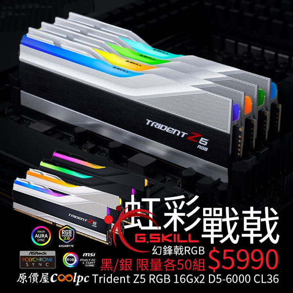 不用等了!DDR5現在可以出手啦!G.Skill Trident Z5 RGB 幻鋒戟 16Gx2 D5-6000記憶體限量免六仟!