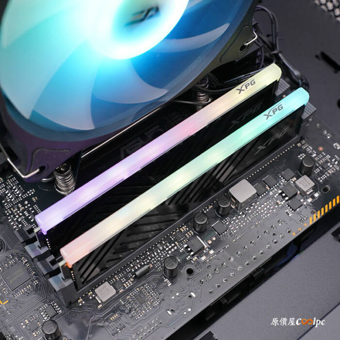 記憶體實際安裝在主機板上,D35G系列燈光效果其實還不賴!不喜歡光害的就可以選D35 單純散熱片版本的,兩款散熱片都有黑色跟白色的外觀可以選擇。