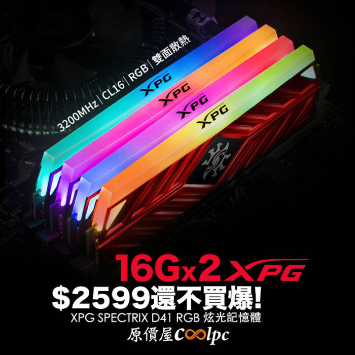 1G $81…不買爆才怪!XPG SPECTRIX D41 RGB 16Gx2 炫光記憶體。