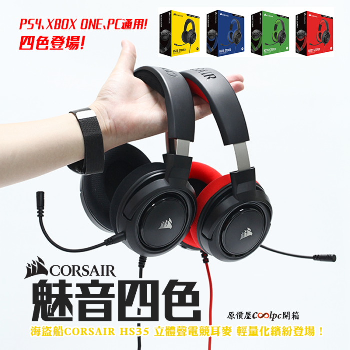 【開箱】魅音四色!海盜船CORSAIR HS35 立體聲電競耳麥輕量化繽紛登場!