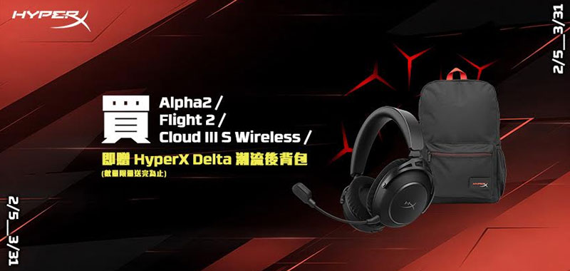 這次活動的三款耳機真的厲害!先來看看主力王牌「HyperX Cloud III S Wireless」。原價 $4990,現在直接降到 $4790,不管黑、黑紅還是白色版本通通同步降價~「Cloud III S」也主打升級版 53mm 驅動單體,聲音更飽滿、定位更清晰!打 FPS 腳步聲像開雷達,追劇看片也有劇院感。搭載 2.4GHz 無線連線,低延遲穩定輸出,搭配舒適記憶泡棉與耐用鋁合金頭帶,長時間配戴依舊輕鬆啦~麥克風支援清晰收音與降噪效果,開黑指揮不破音,隊友都說你像專業實況主!接著!是高CP人氣王「HyperX Cloud Flight 2 Wireless」。原價 $4490,活動價也有 $4290,黑白雙色任選~這款主打輕量化設計與穩定續航,長時間遊戲不壓頭,電力支援就算是長時間連線對戰也不卡關。音效表現依舊維持 HyperX 一貫的均衡調校,低頻有力、高頻清晰,不論是射擊爆破還是 MMO 團戰語音都能穩穩發揮!可旋轉靜音麥克風設計直覺又方便,實用派玩家一定會愛!最後壓軸是旗艦等級的「HyperX Cloud Alpha 2 Wireless」。這款就是為「重度玩家」準備的終極武器(開箱)!採用雙音腔驅動技術,讓低頻與中高頻分離更精準,音場層次分明,細節爆炸清楚。加上超長效續航力,根本是馬拉松型玩家的最佳戰友~旗艦定位、規格滿載,就是要給你最頂級的沉浸體驗!這次活動最犯規的地方不只有降價,甚至還要送價值 $1490 的「HyperX Delta 潮流後背包」一個!黑紅撞色設計,容量實用、質感在線!不只是裝耳機,出門打比賽、上課通勤都能帥一波呢~等於耳機升級,連穿搭都幫你顧好了。總結!想要聲音升級、設備無線化、外型也到位,這檔真的別再觀望~