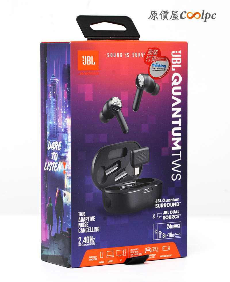 再來就是要和大家介紹小編自己相當喜歡的「JBL Quantum TWS 真無線藍芽耳機」,基本上好攜帶戴久也不會悶熱的入耳式耳機最符合大眾玩家了,重點這支耳機還具備 2.4GHz 無線連接技術,讓你可以使用在更多的裝置上面!