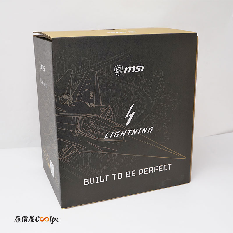 顯卡外盒四面皆有 RTX 5090 LIGHTNING 特色介紹,像是完整 8 吋顯示器、客製化 PCB、全覆蓋冷卻底板、混合式鰭片散熱排、次世代先進幫浦、LIGHTNING 風扇。