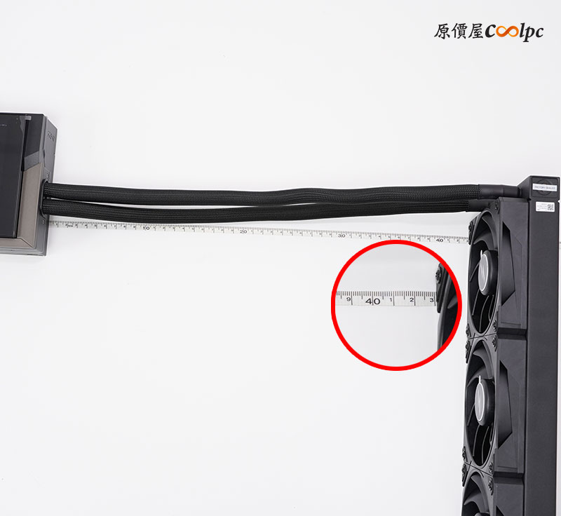 水冷的線材約 42 公分長度,不論是 ATX 還是 E-ATX 規格的機殼,長度基本上都夠用。