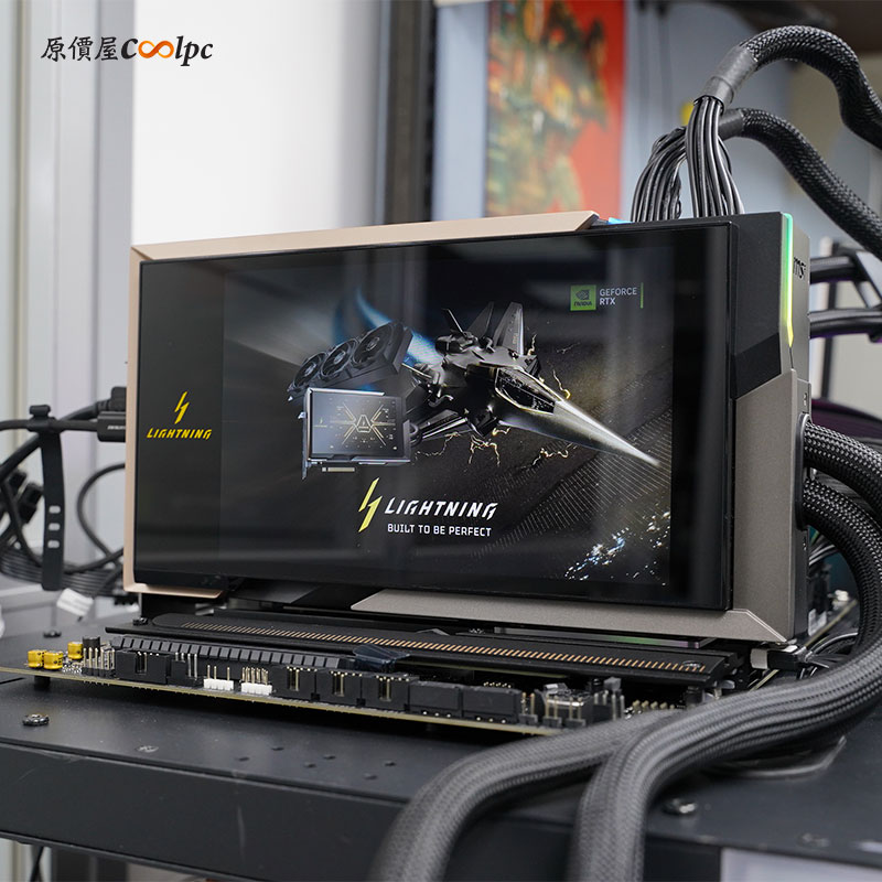 MSI RTX 5090 LIGHTNINIG Z 顯示卡誠意滿滿!專為極致超頻玩家設計,專屬 PCB 配 3oz 加厚銅層與頂級元件強化設計,在極端負載下依然穩定輸出,而且是全球首張支援 1000W 輸出的顯卡,提供兩個 12V-2X6 供電介面,具備雙 BIOS 功能,可即時切換專為高階玩家調校的強化效能模式(2500W XOC 模式僅供追求破紀錄極限使用,啟用將導致保固失效),讓您超頻無極限!能擁有如此強大的效能,全都要歸功於全銅全覆蓋水冷板和次世代幫浦 360mm 一體式水冷,大幅提升散熱效率並維持長時間巔峰效能,為了讓顯卡更有娛樂性,直接配上一個完整的 8 吋顯示器,能即時顯示顯卡負載狀況,甚至是當副螢幕或放自己喜歡的影片或照片,睽違七年的曠世巨作獻給各位老玩家們,有興趣的朋友可以到門市做詢問囉,數量有限,售完為止。