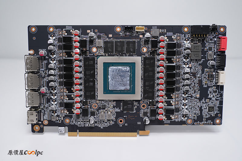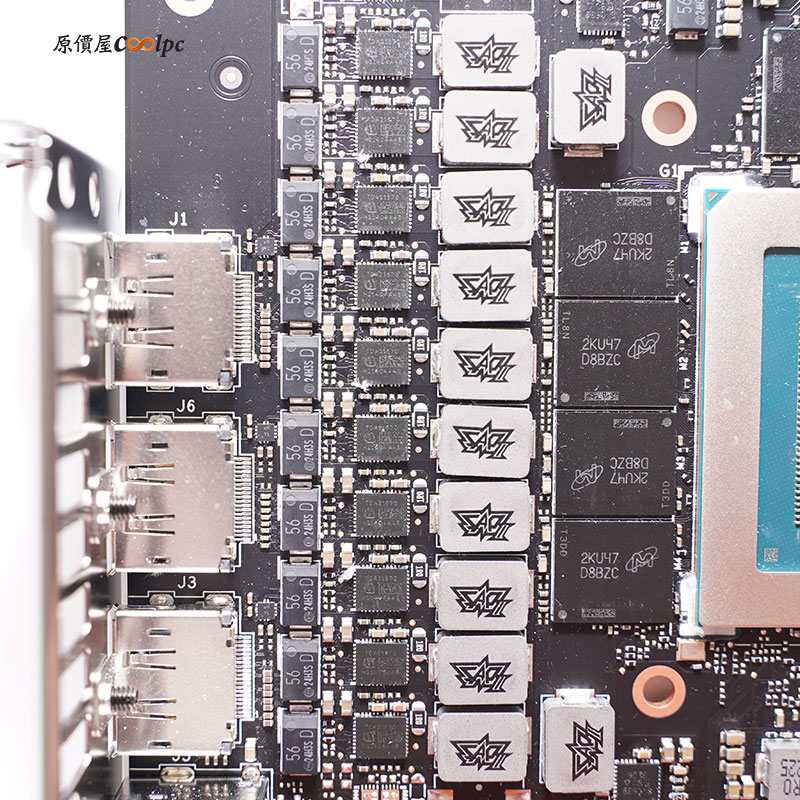 Boost時脈2595MHz、全新造型、八根銅熱導管、金屬背板、三風扇雙滾珠軸承設計、軍規等級電容器、GPU Tweak lll 直覺式效能調教、散熱控制與系統監控軟體,內附多功能顯卡支撐架/螺絲起子兩用、12VHPWR轉4個8pin供電線材,輸出介面提供3 DisplayPort(1.4a)、2HDMI(2.1a),支援HDCP2.3,目前唯一有提供兩個HDMI介面。
