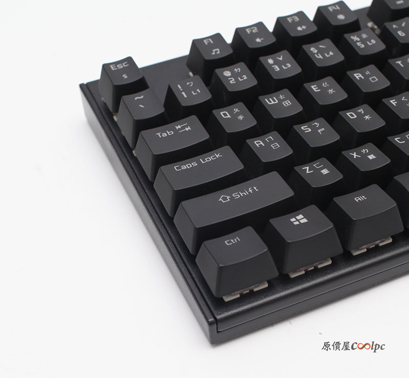 字體採用雷刻鍵帽,獨特的英文字母,搭配小字的注音與字根,打字遊戲都很合適。