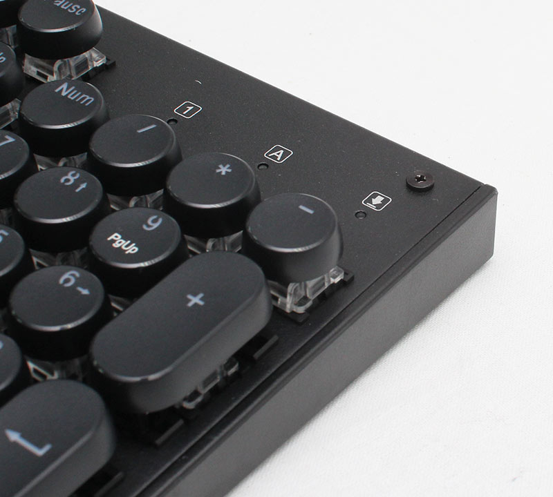 圓形鍵帽中央有一點小凹弧度。值得稱讚的是手感穩定的表現。