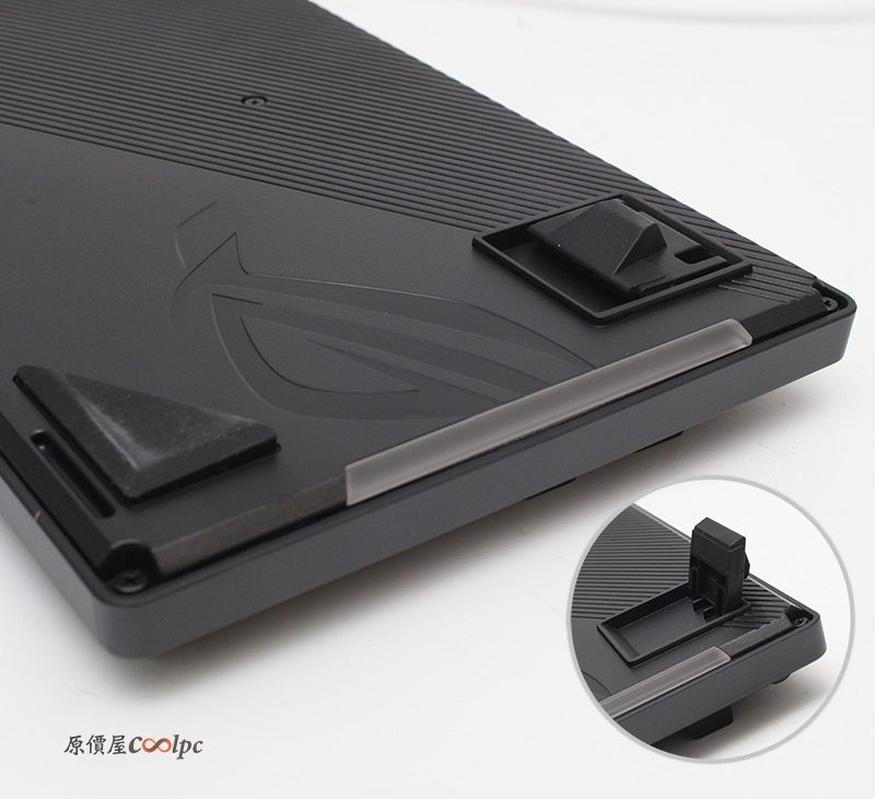 嘖嘖嘖……..有沒有一絕!我想那個小凸腳應該是為了讓光條顯眼打在桌面的小撐起,而且頂部有延伸區塊其實小凸腳對於喜愛平放鍵盤的玩家並不會造成太大影響。