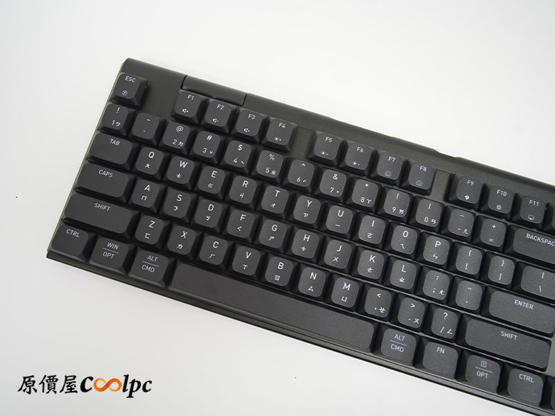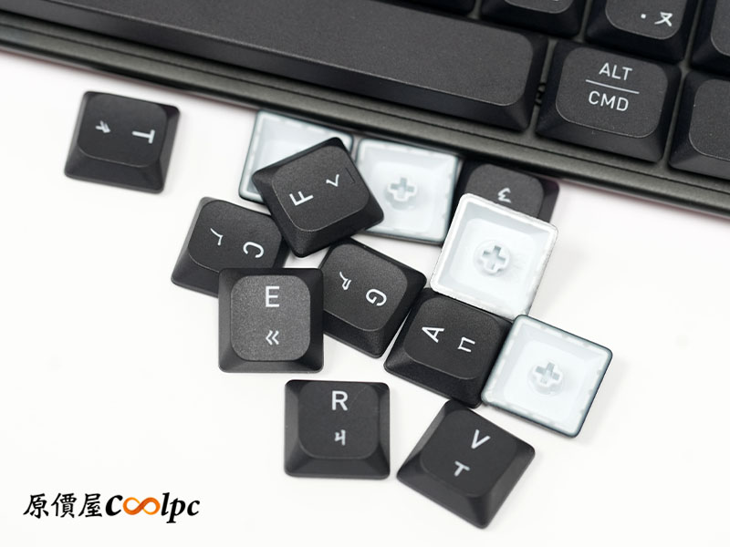 鍵盤採用 PBT 鍵帽,具備抗磨損又耐用的特性。最重要的是,鍵帽上的中文字根可不是印刷上去的!它採用跟英文字母一樣的二色成型工藝,讓耐用度、手感和字體清晰度都更有保證!