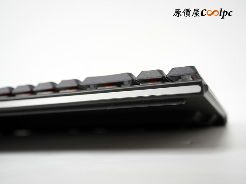 鍵盤底部還有一條亮眼的鏡面飾條,不過它純粹是裝飾功能。小編個人是覺得有點可惜啦,如果這飾條也能跟著發光,RGB 信仰值一定會更高!