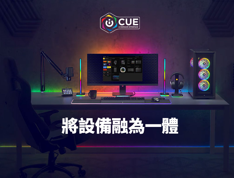 最厲害的是iCUE的連動系統,可以將全套設備融為一體!甚至可監控實時溫度,再去設置自定義燈光效果來告訴您溫度是不是開始升高,還有音頻舞動模式、專有遊戲整合燈光!