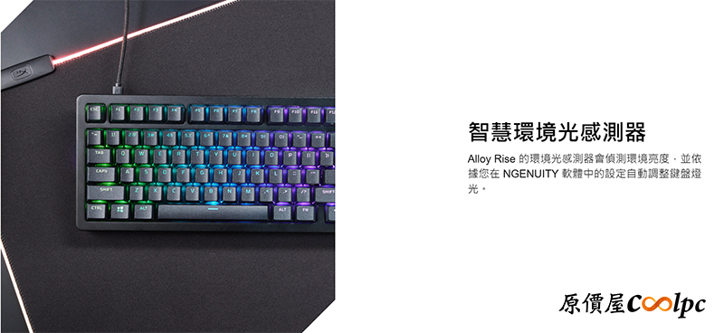 這兩款鍵盤同時支援 HyperX NGENUITY 軟體,支援調控 RGB 特效、設定巨集、快捷鍵、更換按鍵功能等等功能,各位買回去後別忘記下載玩看看!(點我下載)接下來小編用 HyperX Alloy Rise 75 帶大家快速了解一下。