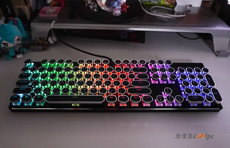 RGB燈光在銀色的打字機鍵帽下非常的漂亮!