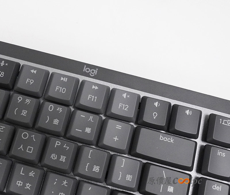 上層延伸出黑色底座恰好與雙色鍵帽搭配設計感,而羅技鍵盤似乎也做出一套自己的視覺語言。