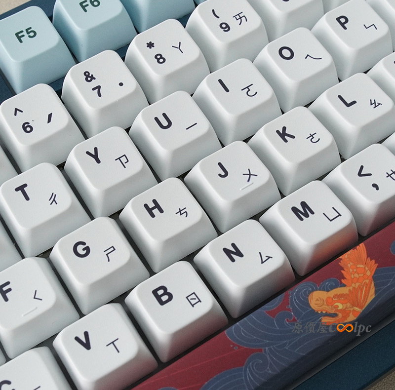 精巧的五面熱昇華!空白鍵充滿大阪氛圍的浪花圖騰跟金鯱呢!長鍵便是大阪城,而R4鍵帽上的圖案我猜應該是寓意豐臣秀吉的家紋吧!是不是很有意境呢…