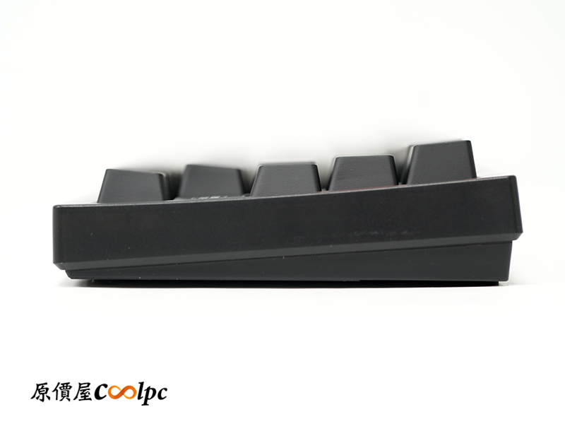 從側面視角觀察,鍵帽呈現階梯式向下傾角,這樣的配置能完美契合手部自然垂放的角度,大幅減輕手腕負擔。