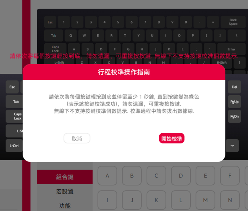 在開始爽玩之前,小編強烈建議大家一定要先幫鍵盤「校準」一遍!雖然每把鍵盤外觀長得一樣,但裡頭軸體用的磁鐵,每一顆的磁通量其實都有微小差異。為了保證後續設定的精準度,新鍵盤拆封後一定要做一次校準才會真的準確唷!