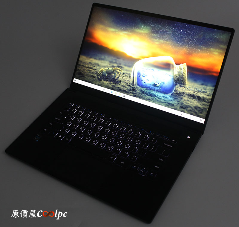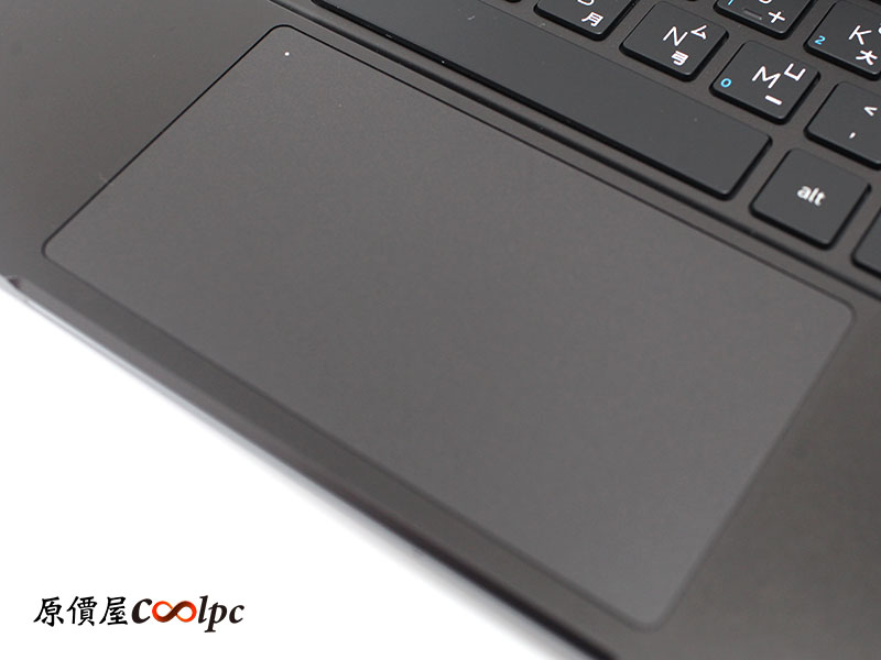 筆電採用 15.6″ 螢幕設計、IPS 鏡面可觸控、1920 x 1080@60Hz 解析度、100% sRGB,面板上頭設置 720p IR 視訊鏡頭,支援 Windows Hello 人臉辨識解鎖,一旁還有測距感應器、環境光感應器,整個 B 面有緩衝墊設計,避免螢幕闔上時不小心敲到面板,C 面鍵盤上端也做了通風口設計來輔助散熱,鍵盤部分具備 LED 背光設計、FN 功能熱鍵,觸控板區域就很有趣了,玻璃觸控面板設計,換句話說整個 C 面相當有 Mac 的味道…