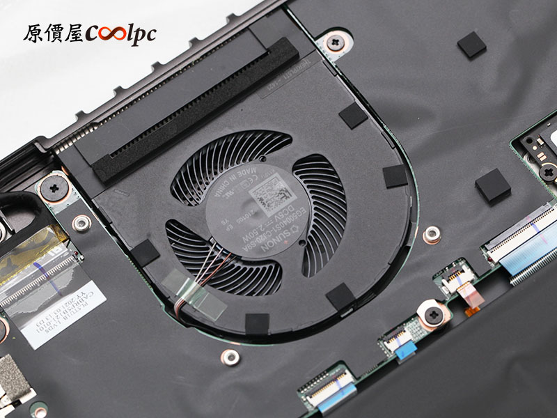 拆開後可看見內部使用雙風扇排熱設計,超大鋰電池型號為 PLIDB-00-15-4S1P-0,額定電壓為 15.2V,額定容量為 4740mAh,72.04Wh,充電限制電壓為 17.4V,硬碟使用 Samsung PM9A1 M.2 PCIe Gen4 512G,標榜讀寫速度可達 6900/5000MB/s、800/800K IOPS,專業人士的最愛!無線網卡使用 Intel Wi-Fi 6 AX201 (AX201NGW),提供802.11ax 2.4GHz+5GHz(160MHz)雙頻,最高傳輸達 2.4Gbps 並整合藍芽功能,16G 記憶體應該是直接焊在主機板內了。