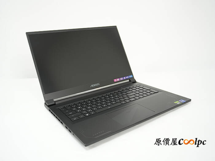 C面鍵盤採用常見的孤島式設計,101鍵布局,支援 RGB Fusion可控背光功能、巨集功能、FN快捷功能鍵。上方幾何形按鈕為電源鍵,啟動時會有背光,下方觸控板印著 AORUS 鷹頭圖樣,並且使用專利玻璃觸控工藝,特殊 AF 鍍膜還抗指紋、抗油汙、抗指紋等能力,右下方有貼著,NVIDIA、Intel 貼紙。