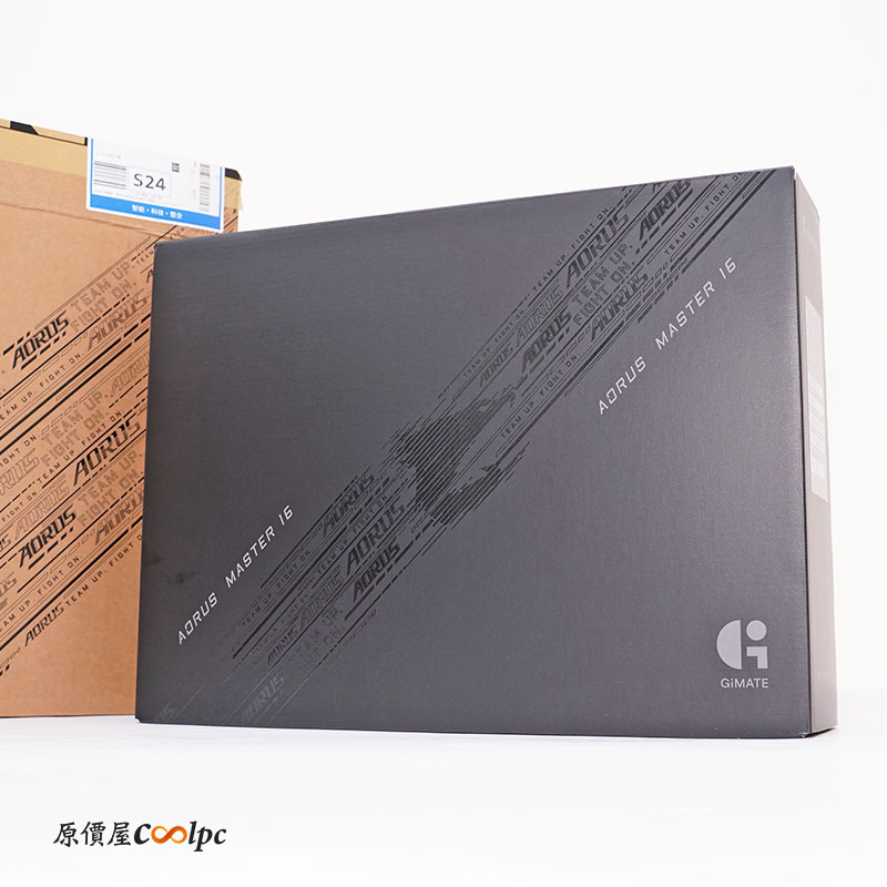 外盒一看就知道這是技嘉 AORUS 產品!除了充滿電競元素編排 LOGO 之外,一旁還有 AORUS MASTER 16 筆電的型號。