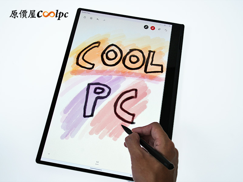 前面提到只需要靠觸碰螢幕與拖曳就能使用,但在筆電模式中使用觸控筆還是有點彆腳,真正能大放異彩的還是只有平板模式與繪圖作業啦!小編試著再 Office OneNote 與 Bamboo Paper 上操作一番,發現這觸控筆居然還有防誤觸設計,這真是太貼心了!下筆的手感絲滑流暢,螢幕上也不會留下痕跡,另外還能按照下筆的力道影響筆刷的深淺,側邊與上方實體按鈕反應也很迅速,就連小編不常用觸控筆的人馬上就能得心應手的使用,若是交給專業的各位肯定是如魚得水啦!