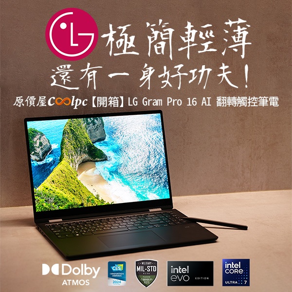 融合了筆電實用性與平板電腦便利性,並得益於越來越進步的晶片技術,這類型的產品越來越吸引人,如果你恰好對這類型筆電感興趣的話,小編誠心地推薦給您,回頭來看 LG Gram Pro 16 幾個優點,採用 Intel Core Ultra 7 155H 處理器,內建 AI NPU 與性能不錯的 Arc 內顯,最低功耗僅 20W,並且通過 Intel Evo 認證,強大的效能下還有超長的續航力,還有兩組 Thunderbolt 4 提供豐富的擴充能力,能滿足絕大部分的使用者了… 16吋 OLED 觸控螢幕表現也很搶眼,2880 x 1800 解析度、120Hz 更新率、DCI-P3 100% 廣色域,放眼同級們無非是前段班的表現!360˚ 翻轉功能只少擁有五種以上的使用方式,從筆電切換成平板也只在你的一念之間,內附 LG 專業觸控筆也讓使用方式更多元!這次小編實際體驗下來確實驚豔,畢竟過往的產品不外乎就是厚重、要不就犧牲效能換取更輕的機身,這款 LG Gram Pro 16 能在兩者之間取得不錯的平衡確實不錯,現在原價屋已正式上架販售,售價 $47,900,各位感興趣的朋友歡迎至原價屋線上估價系統下訂,或是到原價屋門市做詢問喔!