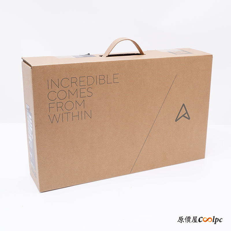 不得不說這個盒子小編越看越喜歡!內外都超有質感,筆電外層採用紙張包覆,底層還有隔層,放使用手冊和註冊說明紙本。