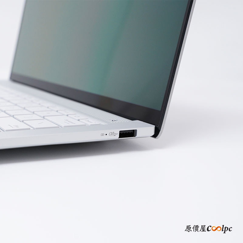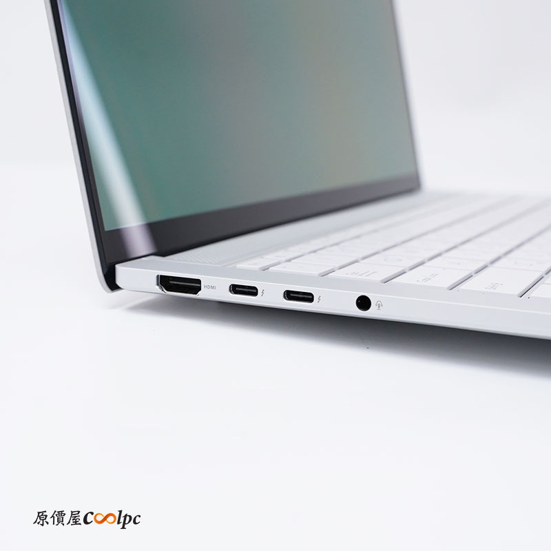暖煦白 A 蓋的部分採用高科技陶瓷鋁合金(Ceraluminum)設計,它具備岩石的自然觸感,而且不容易沾指紋,既有質感又耐看的配色,搭配上 Zenbook 獨特的 A 字母 LOGO,坐在星巴克辦公會讓人忍不住多看幾眼啊!從側面來看有兩層,最外層就是高科技陶瓷鋁合金,黑色那塊則是螢幕。