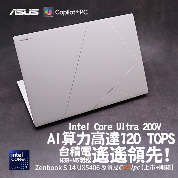 【開箱】AI算力高達120 TOPS的Intel Core Ultra 200V處理器!華碩 Zenbook S 14 UX5406 Copilot+PC 筆電上市!
