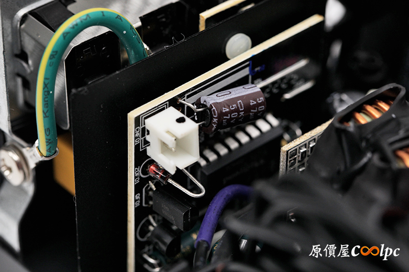 在來看看內部的豐富用料,採用400v日系電容設計, 先進的DC to DC 架構技術,可提供嚴謹的電壓調節,另外也有主變壓器設計、濾波電路、多顆日系固態電容,也有避免不平衡的功率負載,配置熱敏電阻、繼電器與保險絲,可以用來防止浪湧電流,而橋式整流器在散熱片下方,LLC半橋式諧振轉換器、主變壓器12V同步整流電路,強化的模組化接頭電流傳遞路徑,還有多個固態電容強化負載濾波能力。