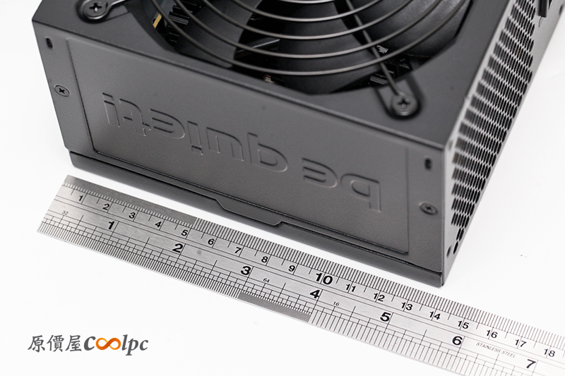 這次電供配置的風扇是採用優質的溫控120mm風扇,能有效的降低系統噪音,也特別在風扇安裝處這面使用了精緻簡約的金屬上蓋,中心點也有個"be quiet!"的銘牌設計。
