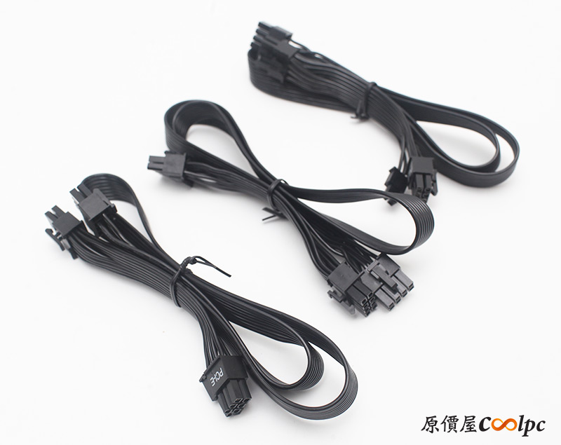 PCIe電源給了三條,如果是GEX X2 850W的版本會是兩條,每條線都分出兩個8(6+2)Pin,不過還是建議玩家顯卡需要幾個8Pin就接幾條線,這樣供電會更穩定喔。