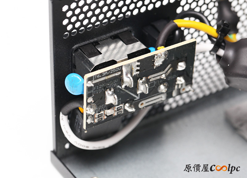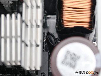 APFC電路使用一顆NIPPON CHEMI-CON 400v 820μF作為主電容,一旁有一顆黑色的NTC熱敏電阻保護,還有一顆APFC電感。
