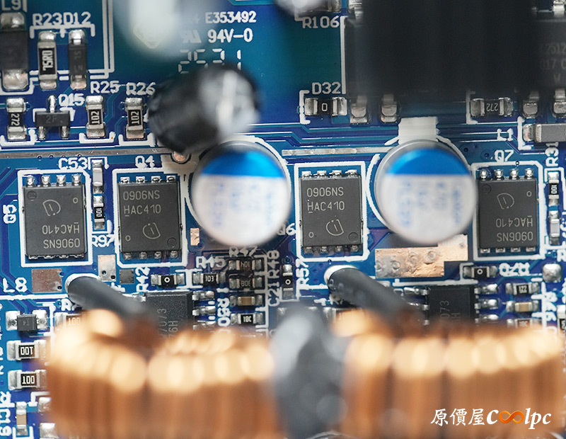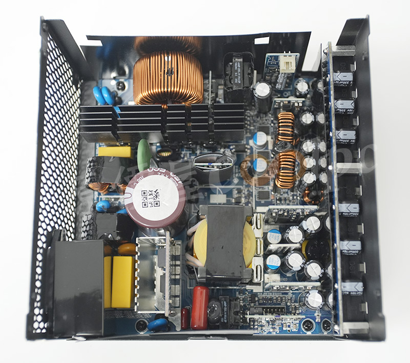 內部零件非常密集,合在一起就是今天看到這顆振華LEADEX III 850W電源,擁有850W大瓦數,通過CYBENETICS白金/CYBENETICS 230V白金效率認證,使用APFC主動式功率因數校正、DC-DC主流架構,配備日系主電容,全模組化輸出設計,再提供過電壓OVP、過電流OCP、過負載OPP、過溫度OTP、短路SCP、低電壓UVP、無負載NLO、抗湧浪SIP等8項安全保護機制。搭配一顆14cm H.D.B.軸承風扇散熱,並有ECO智慧風扇模式在低負載自動停轉降噪,原廠10年保固。