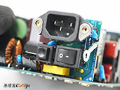 後方是POWER CORD插孔,還有電源翹板開關,以及剛剛提到的風扇ECO模式按鈕,其餘面積也是幾何造型孔洞輔助散熱。