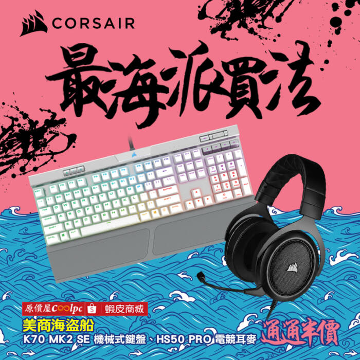 什麼才是最海派的買法?海盜船 CORSAIR K70 MK2 SE、HS50 PRO 通通半價!