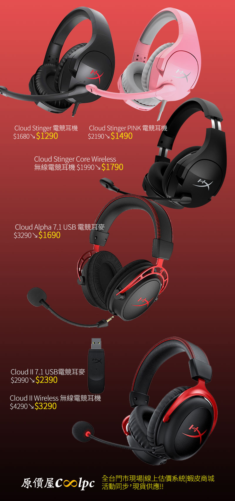 男朋友教召回來送給他一個驚喜吧!這次HyperX 為期一整個月的「奪寶日」活動非常精采,涵蓋各項類別有最低52折起的年度超殺優惠!麥克風系列 Quadcast 也加入優惠,耳機下殺最誇張是 Cloud Alpha 耳機直接從三千多元降到$1690。機械式鍵盤 Alloy Origins 的$1990搶盡風頭!滑鼠中 Pulsefire Core 竟然只要$590!!!! 這次 HyperX 誠意十足原價屋獨家再送精美小禮物唷..