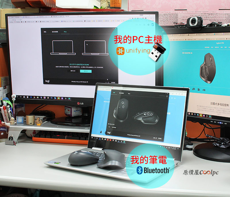 我的電腦主機跟平時帶出門的筆電,羅技 Flow 可以跨電腦控制與檔案分享,直接複製貼上都沒有問題!