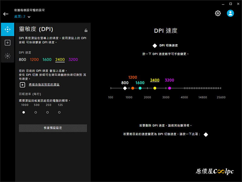 羅技 G HUB 驅動100分!第一個靈敏度,可以自由調節當前的DPI段位,”指派”真的很強大,包含很多windows預設鍵都可以做指派,LIGHTSYNC燈光可以讓滑鼠八的燈光區塊都自由設置。