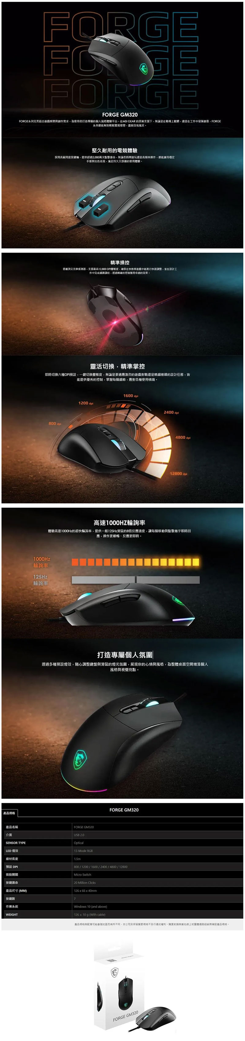 .MSI Forge GM320 電競滑鼠 價值$490