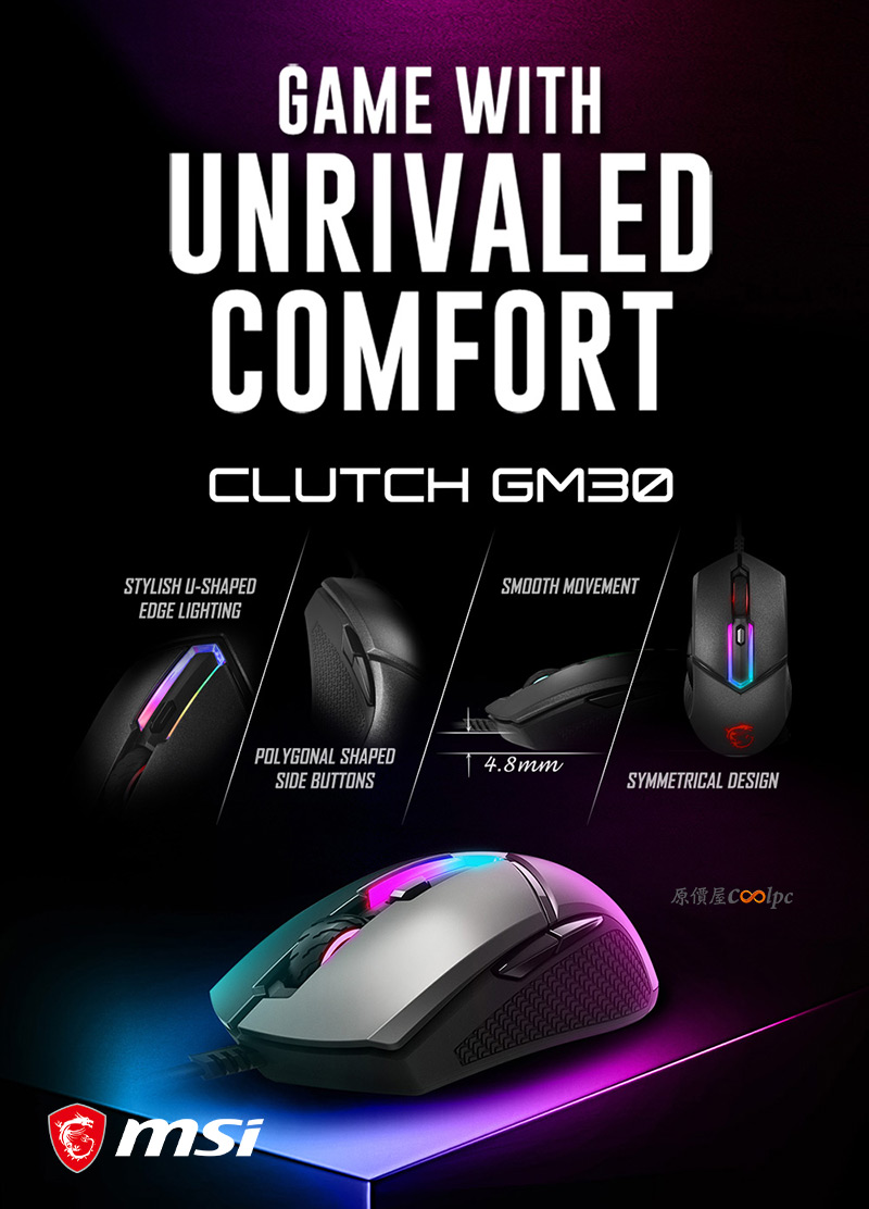 MSI Clutch GM30 電競滑鼠 $1390(官網)