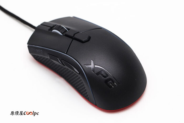 鼠身的設計也算是是用於右手玩家的設計,而滑鼠的外觀算是相當低調的無光澤黑色風格,最特別的設計算是鼠身上的刻紋XPG LOGO了。
