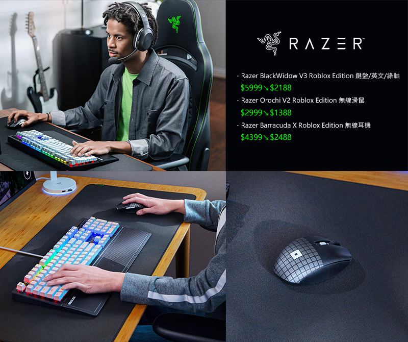 >>去原價屋蝦皮商城下單(BlackShark V2 Special Edition / BlackWidow V3 Roblox Edition / Orochi V2 Roblox Edition / Barracuda X Roblox Edition)