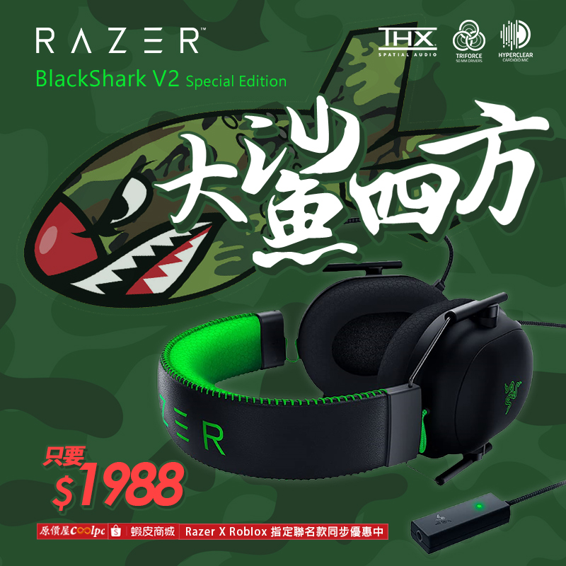 【蝦皮限定】THX Spatial Audio 聽音辨位大鯊四方!Razer BlackShark V2 Special Edition 電競耳機不用兩千!
