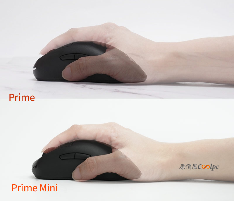 應該說!Prime 對我來說就是正常身型的滑鼠,而MINI就是真正更好抓握、爪握方式來操控。