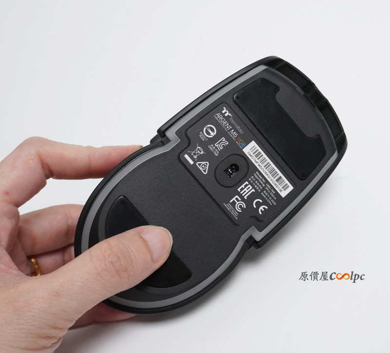 其實曜越電競裡面有一些小特色還滿 Old School 的,像是這個翻頁設計明明就很實用,但現在很少見了!因為這樣可以稍微的試握到滑鼠的大概尺寸。